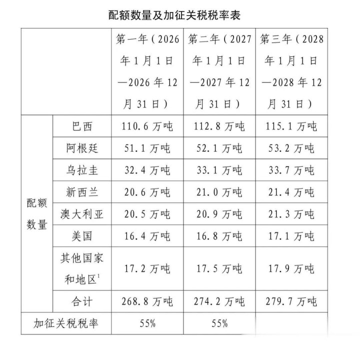 更要命的是配额外关税。原本根据自贸协议,就算超标,也只是恢复到最惠国待遇;但现在,关税直接跳升到55%。这意味着一旦配额用完,澳洲牛肉在中国市场将彻底失去竞争力。