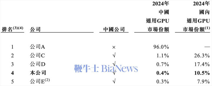在产品及交付方面,天数智芯拥有“天垓”和“智铠”两条产品线,分别覆盖AI训练与推理场景。自2022年至2025年上半年,公司通用GPU产品累计出货量合计约为5.3万片。根据弗若斯特沙利文报告,按2024年收入计,天数智芯在中国通用GPU市场排名第五,市占率为0.3%;在训练型通用GPU领域,其收入在国产GPU公司中排名第四。