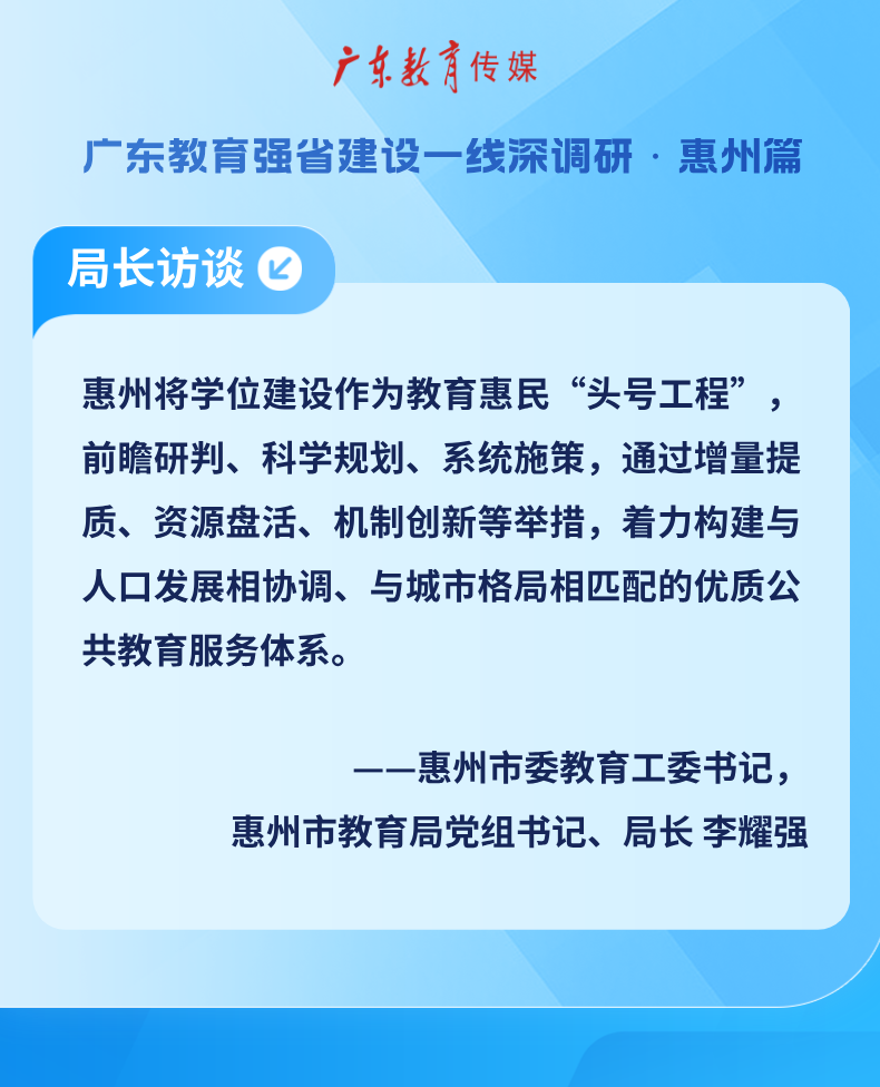 《广东教育》:面对人口流动和城镇化趋势,惠州如何精准规划学位供给,让更多孩子享受优质教育资源?