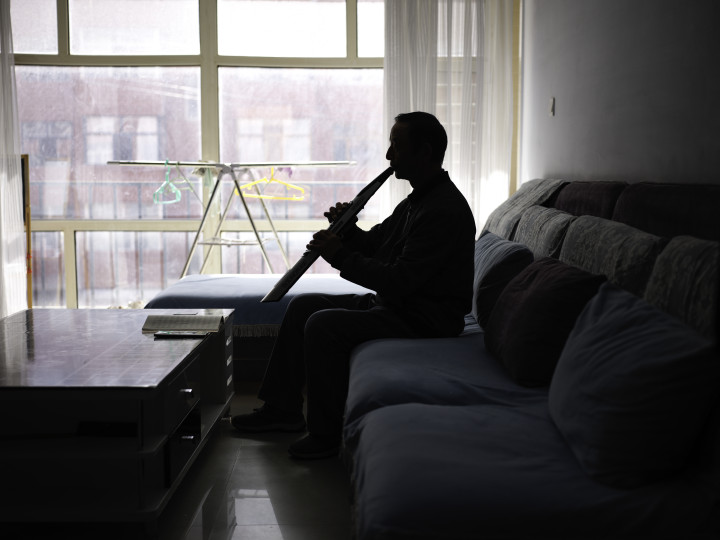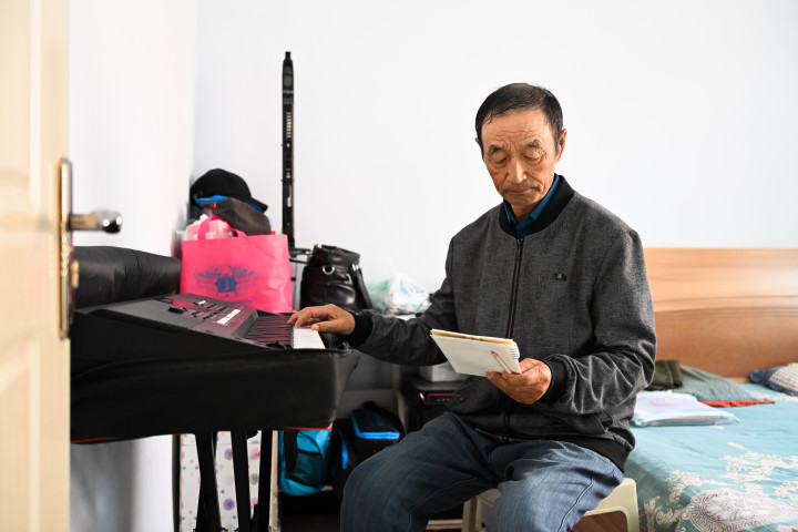 9月25日,在内蒙古锡林郭勒盟苏尼特右旗多多策略,其木德在家中演奏自己谱写的曲目。新华社记者 刘金海 摄
