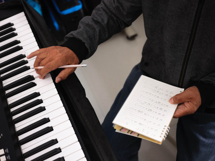 退休后,其木德自学了音乐创作和乐器演奏。在一册音乐手稿里,写满了他经过多次修改的曲谱和歌词,其中有一篇被其木德视若珍宝。“随着音乐知识不断增加,我终于结合‘三千孤儿入内蒙’的历史,谱写出了《国家的孩子》这首歌”。