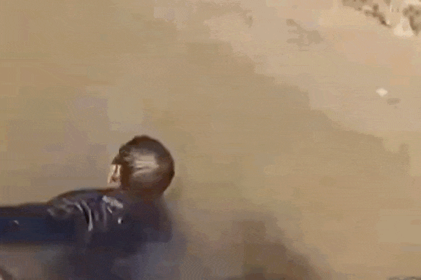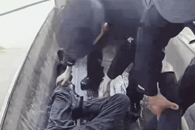 小船靠近老人时,其已神志不清。民警在颠簸的小船上紧紧抓住大爷衣物,两人全力协作,将浑身湿透的大爷从冰冷河水中托起,稳稳抬上船头。