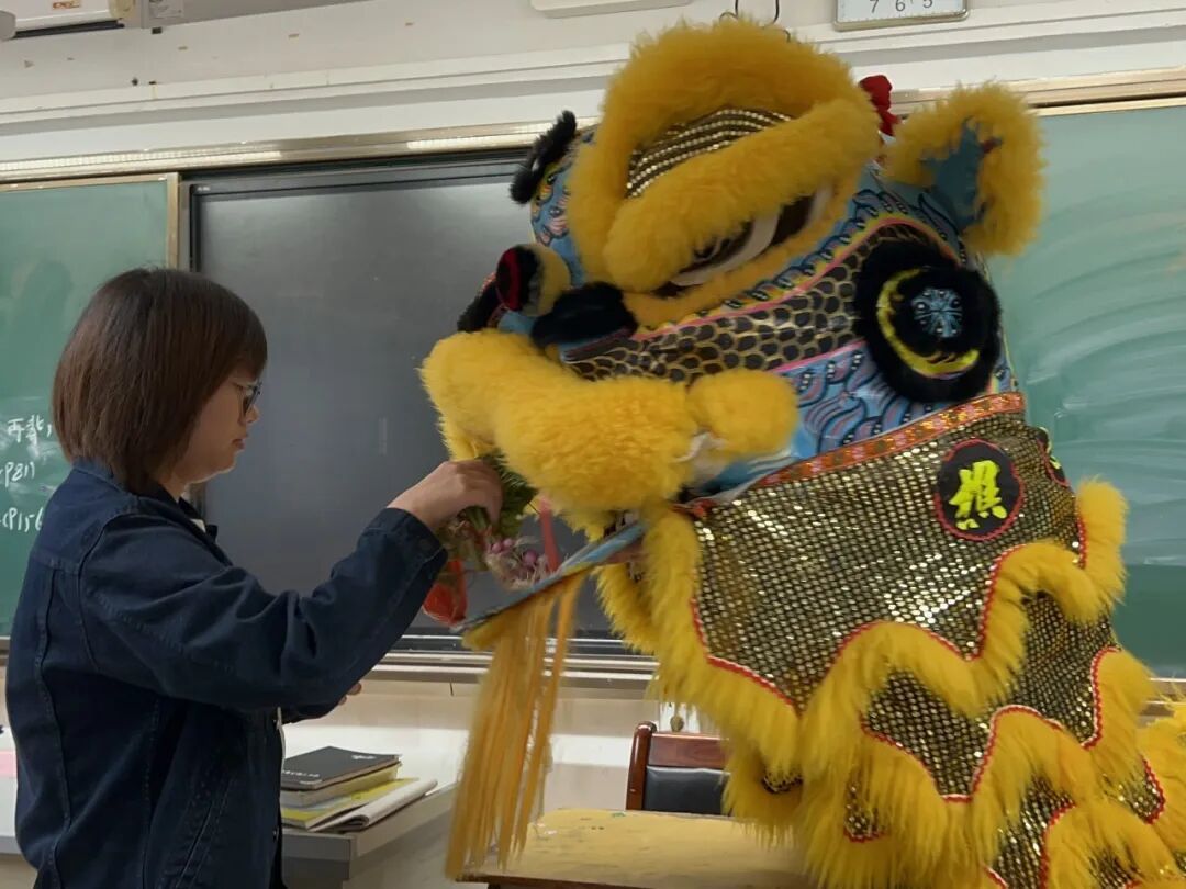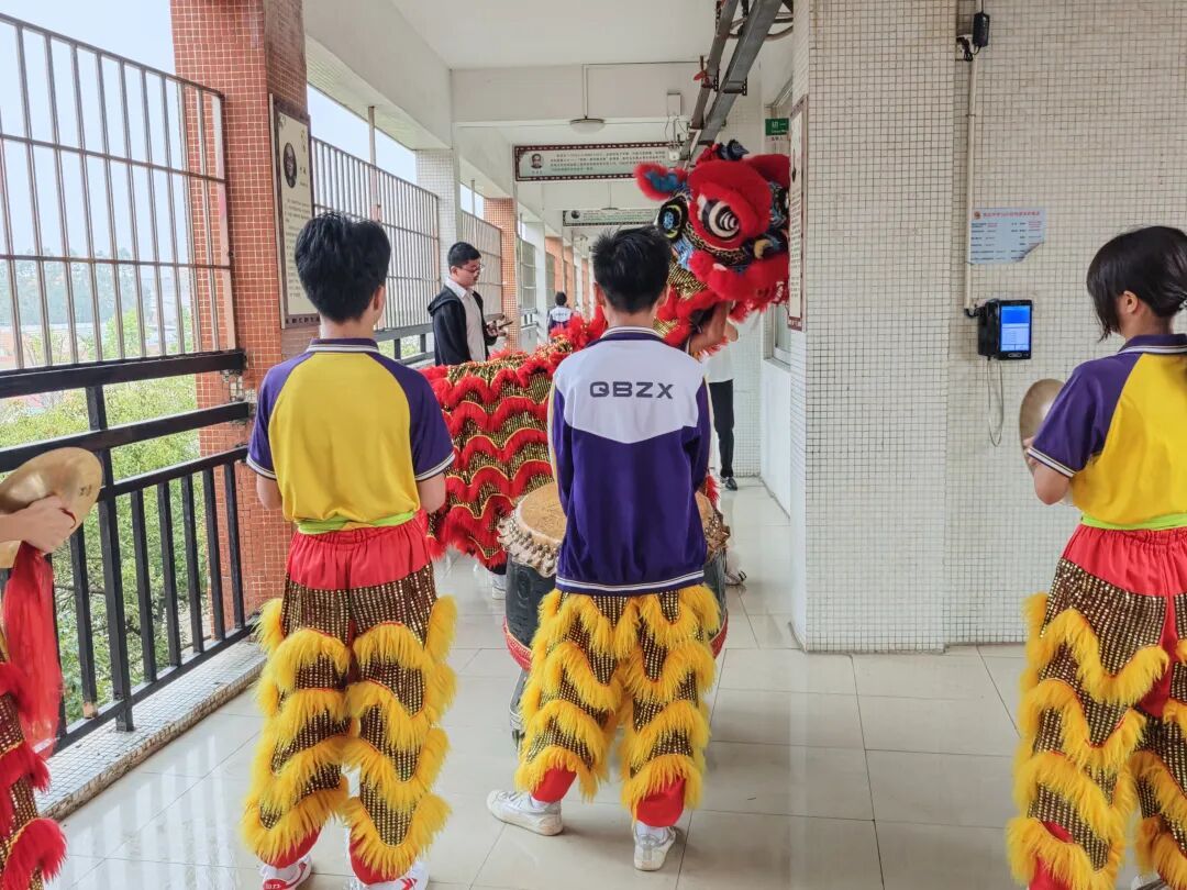 清晨,筑梦团队便已活跃在校园,在教学楼前采青送福,为各班送去新春祝福与吉祥好运。