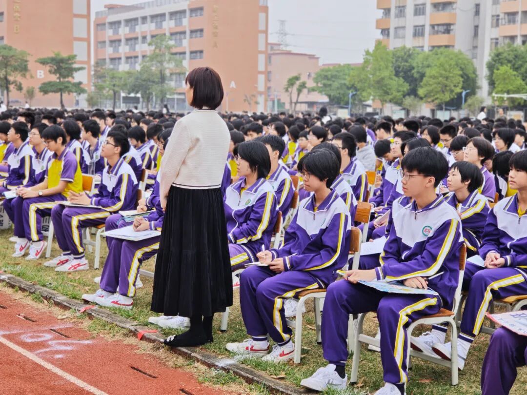 曾国华校长在开学典礼上致辞。他立足佛山市“环两江”先行区建设,表示学校将持续深化大思政育人体系,将思政教育、家乡建设与校园成长紧密结合,引导师生在新学期策马扬鞭、奋勇前行。他以三句话与全体师生共勉:以自强不息为底色,把坚韧刻进日常,在课堂上专注求索,在挑战中永不言弃;以胸怀天下为格局,扎根家乡热土,关注家国发展,将个人理想融入时代洪流;以多元成长为路径,尊重差异、鼓励特长,让每个生命都被看见、被点亮。
